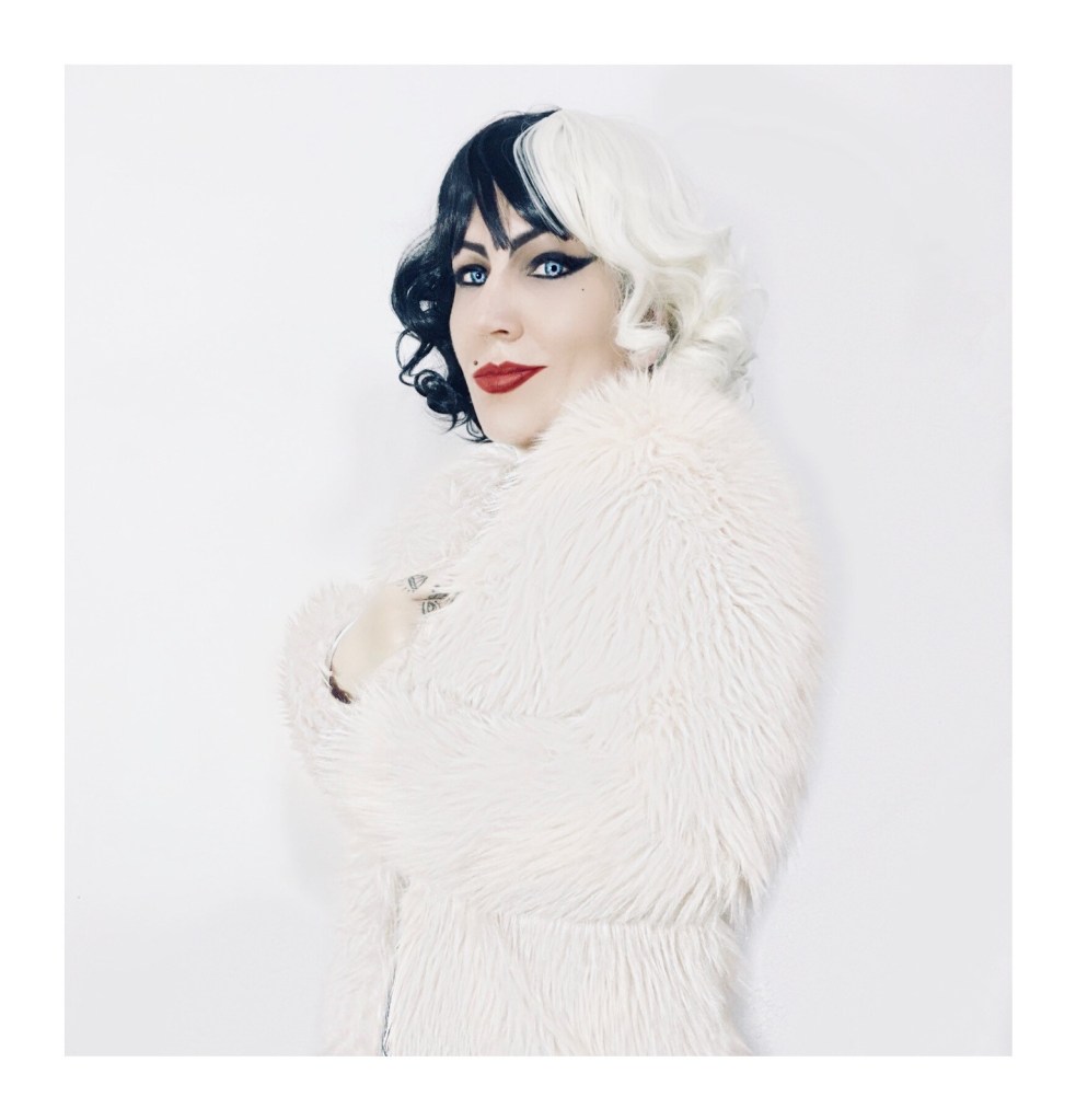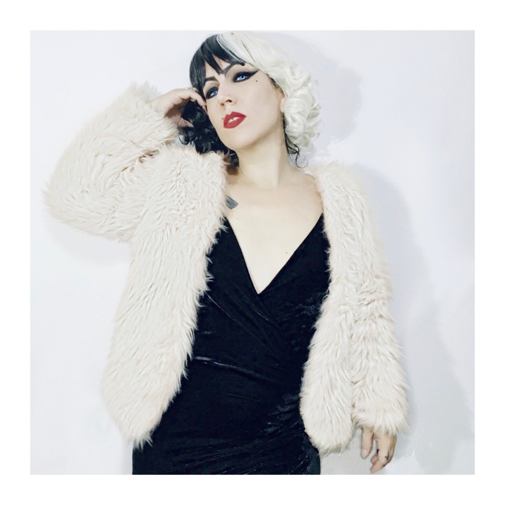 Termino no melhor estilo Cruella DeVil, com este casaco de pelos sintéticos que paguei baratooooo em um desapego entre amigas.