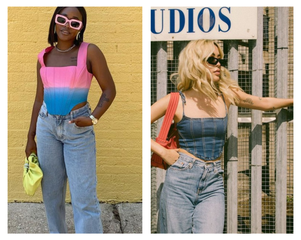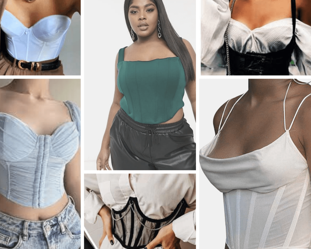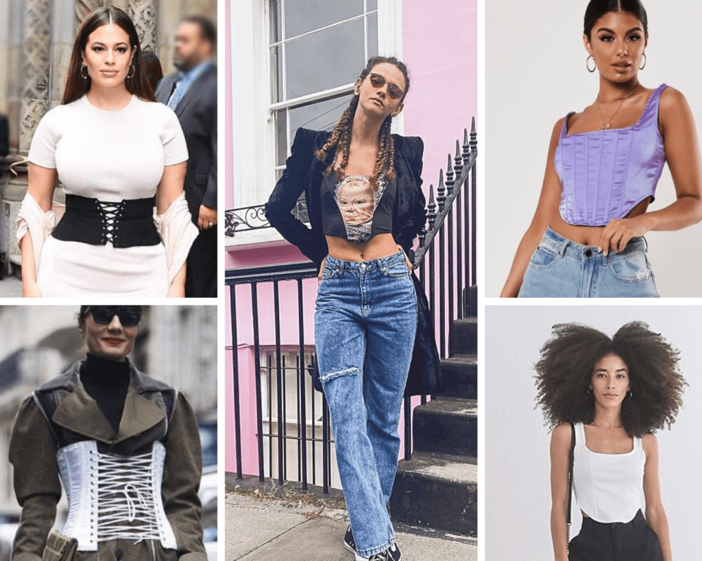 O corset, palavra francesa que significa espartilho, entrou definitivamente no guarda-roupa feminino desde a Década de 90’’ (Falaremos sobre isso mais tarde) E apesar de aparecer em looks já há algumas temporadas. E, com certeza, será peça-chave de looks em 2022, ajudando a modelar a silhueta, afinando a cintura e deixando os seus Looks muito mais sexys