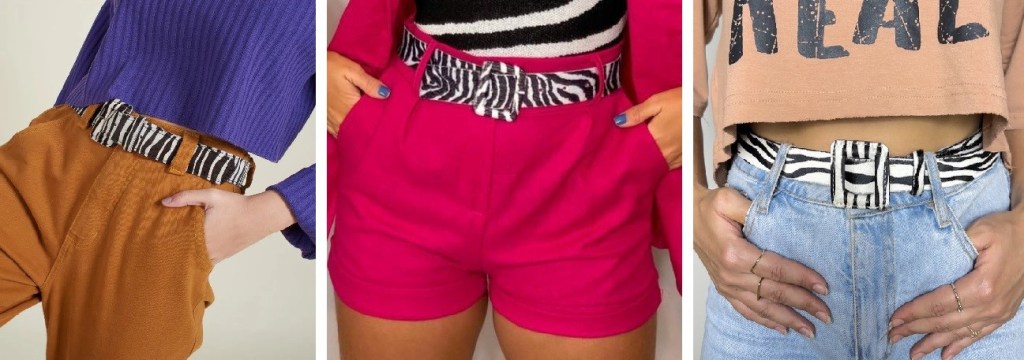 Nos acessórios a zebra aparece com mais sutileza, mas ainda ganha um destaque enorme nos looks! Bolsas e cintos são ideais para levar aquele look que precisa de um pouco de textura, mas os sapatos são os nossos favoritos: deixa qualquer look mais cool no ato! Botas, sandálias, scarpins e rasteirinhas…