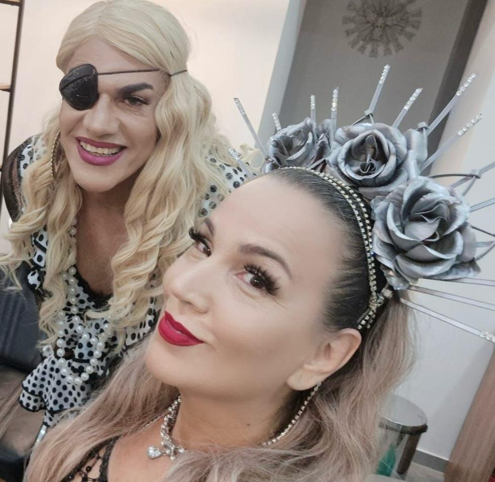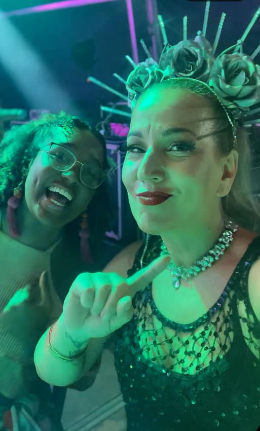 Eu e minha amiga Paulina nos montamos para lacrar no evento