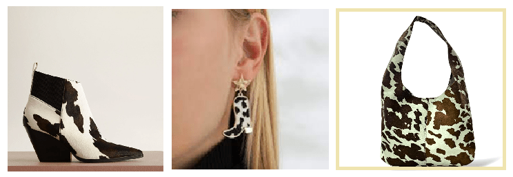 Você não gosta de usar estampas em roupas? Aqui não existe problema e para essa estampa o céu é o limite! Os acessórios são super bem contemplados quando se fala em Cow Print e pode ser uma forma certeira de compor um look mais básico.