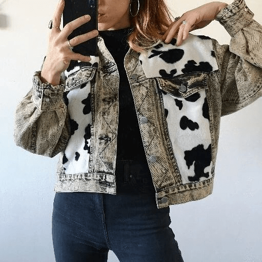 Você pode ter uma peça COW PRINT sem gastar muito. Aquela jaqueta jeans largada no armário ou garimpada em um brechó, com simples retalhos aplicados pode virar um item tendência. O mesmo serve para calças, saias, shorts e coletes. Que tal?