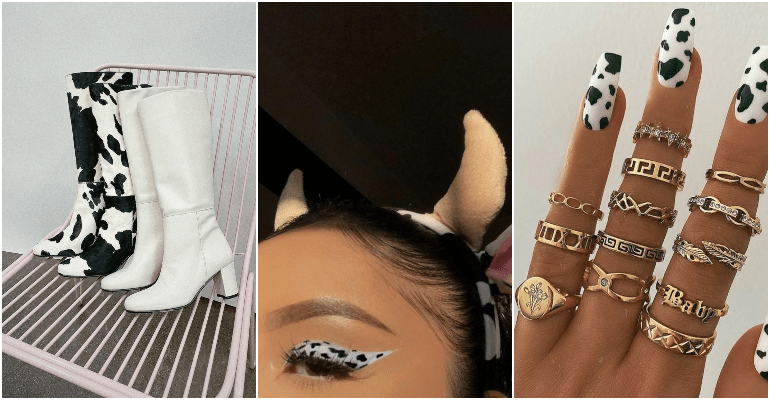 A Cow Print já está presente não só nas roupas e acessórios, como também em várias expressões criativas, como em unhas e makes.