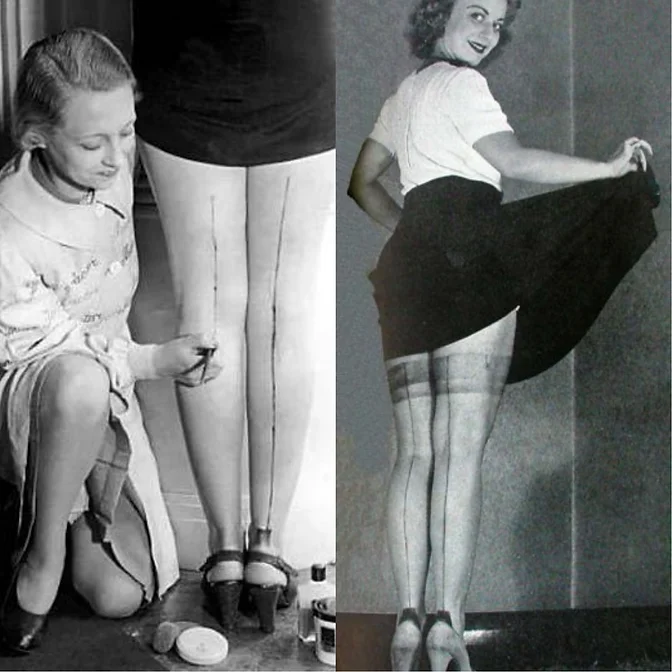 Várias grandes marcas de cosméticos como Estée Lauder (1946), Wella (1946), e Parfums Christian Dior (1947) foram fundadas durante os anos quarenta, Outro item bastante utilizado pelas mulheres que também ficou em falta foram as meias de nylon, pois o material era necessário para fazer itens como pára-quedas militares e redes. Por isso, as mulheres começaram a pintar em suas pernas o desenho das costuras das meias para dar a ilusão que as estavam usando.
